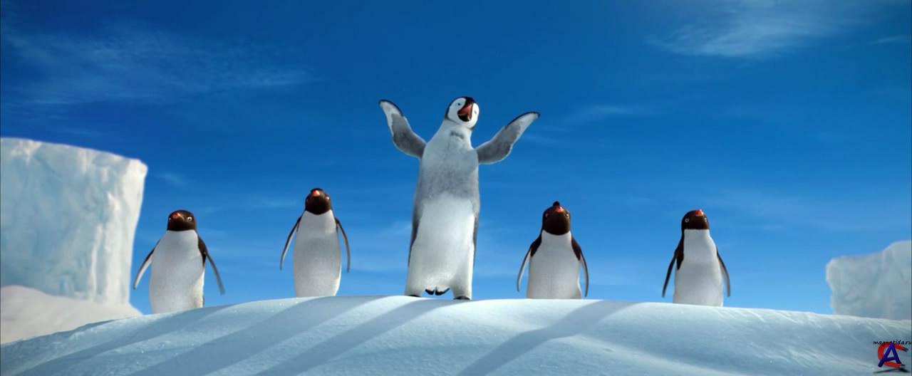 Качество: HD Видео кодек: MPEG4 Video (H264) 1280x528 23.98fps Аудио кодек: Dolby AC3 48000Hz 6ch Жанр: комедия, приключения, семейный, мультфильм, музыка Перевод: дубляж Премьера в мире: 16 ноября 2006 Премьера в РФ: 21 декабря 2006, «Каро-Премьер» Рейтинг mpaa: PG - Рекомендуется присутствие родителей Продолжительность: 104 мин. Информация о фильме: В музыкальном мире императорских пингвинов, которые находят себе пару благодаря пению, рождается пингвиненок по имени Мамбл, который не может издать ни одной ноты зато может отплясывать ту еще чечетку. Его родители, Норма Джин и Мемфис в отчаянии, но надеются, что их лишенный музыкального слуха малыш перерастет свое нелепое танцевальное увлечение. Однако пытаясь пропеть хоть какую-то мелодию, он не может перестать отбивать чечетку даже ради того, чтобы завоевать любовь своей возлюбленной Глории