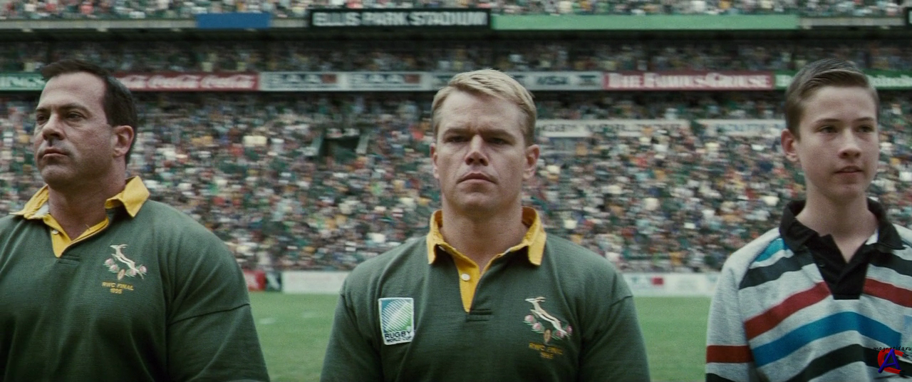 Качество: BDRip Видео кодек: H.264 Аудио кодек: AC3, DTS Видео: 1280x536, 23.976 fps, x264@L3.1, ~5517 Kbps Аудио№1: Русский: AC3, 48 kHz, 5.1 ch, ~384 kbps avg |Любительский| Аудио№2: Английский: DTS, 48 kHz, 5.1 ch, ~1510 kbps avg |Оригинал| Субтитры: русские, англ. (srt) Жанр: драма, биография, история, спорт Перевод: Любительский (двухголосый) Премьера в мире: 3 декабря 2009 Премьера в РФ: 13 мая 2010, «Каро-Премьер» Рейтинг mpaa: PG-13 - Детям до 13 лет просмотр не желателен Продолжительность: 133 мин. Информация о фильме: Фильм о времени после падения апартеида, когда Южная Африка провела у себя Кубок мира по регби 1995 года. Тогда шел первый президентский срок Нельсона Манделы, который пытался использовать все возможности, чтобы прекратить многолетнее непонимание между белым и чернокожим населением страны.