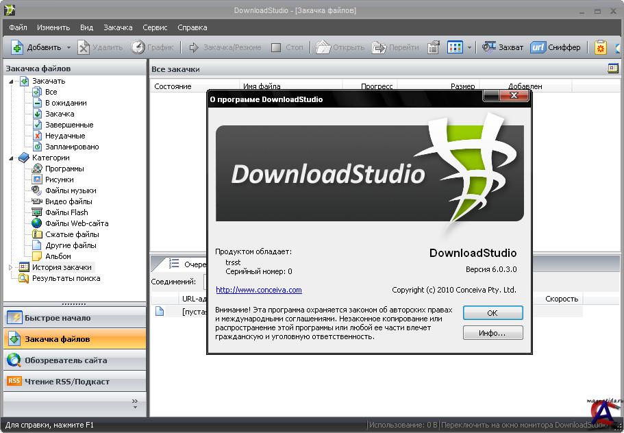 Название Программы: Conceiva DownloadStudio Версия программы: 6.0.3.0 Последняя Версия программы: 6.0.3.0 Язык интерфейса: Eng+Rus Лечение: в комплекте, русификатор,он же патч