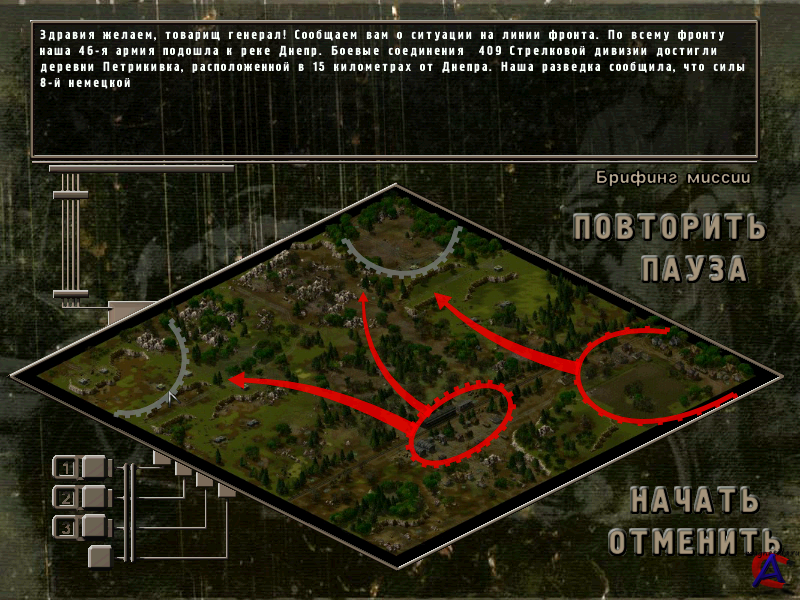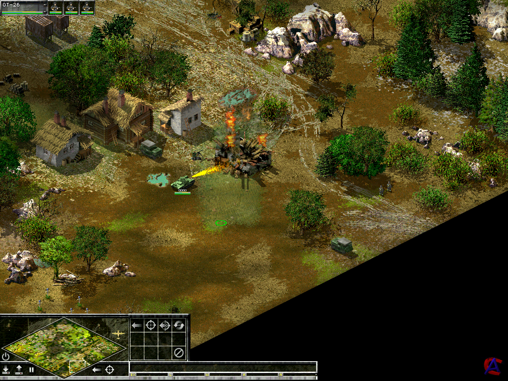 Противостояние 4 / Sudden Strike 2 (2002) PC Информация об Игре: Название: Противостояние IV / Sudden Strike II Жанры: Стратегия Год выпуска: 2002 Разработчик: Fireglow Games Издатель в России: Руссобит-М Размер файла: 380 Мб Язык: Русский Издание: Лицензия Таблэтка, Crack, no DVD: Не требуется. Противостояние 4 очень похожа на предыдущую часть игры. В ней вы найдёте все функциональные особенности Противостояния 3. Но вот качество самой игры улучшится на порядок. Действия Противостояния 4 будут всё также разворачиваться во времена Второй Мировой войны, а игрок сможет управлять армиями пяти различных государств: немцы, японцы, англичане, американцы и, конечно же, русские. Каждая из кампаний также будет иметь чёткую историческую основу. Десантные шлюпки с глухим стуком врезаются в берег, и целая толпа вооруженных до зубов жителей страны восходящего солнца с боевыми воплями штурмуют песчаный пляж. В строю наблюдается явный беспорядок, офицеры бегают между взводов и раздают ободряющие пинки. Звучит сигнал воздушной тревоги. На горизонте появляются английские бомбардировщики. Нестройной колонной самураи бегут к джунглям, над головой гудит пропеллером самолёт-разведчик, а пятый взвод напарывается на сброшенный из поднебесья взрывпакет. Из леса слышна пальба, личный состав в панике, а коварный бомбардировщик медленно заходит на второй круг. Такую картину можно наблюдать играя в достойное продолжение величайшей игры. Однопользовательский режим Многопользовательский режим Редактор миссий СИСТЕМНЫЕ ТРЕБОВАНИЯ - IBM - совместимый персональный компьютер - Операционная система: WINDOWS 9x, ME, 2000 или XP - Установленная DirectX Версии 8 - Свободное место на жестком диске >=350 MB (Mегабайт) - Манипулятор -Мышь- - Установленная, 100% DirectX совместимая, звуковая карта - Клавиатура МИНИМАЛЬНАЯ СИСТЕМНАЯ КОНФИГУРАЦИЯ - P2 333 MHz (Мегагерц) процессор - 64 MB (Mегабайт) оперативной памяти - 8 MB (Мегабайт) видеокартa РЕКОМЕНДУЕМАЯ СИСТЕМНАЯ КОНФИГУРАЦИЯ - P3 500 MHz (Мегагерц) процессор или выше - 128 MB (Мегабайт) оперативной памяти или выше - 16 MB (Мегабайт) видеокарта или выше