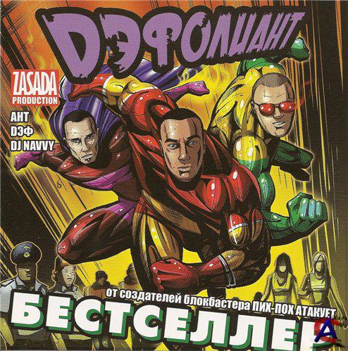 Жанр: Hip-Hop Год выпуска диска: 2009 Производитель диска: Россия Аудио кодек: MP3 Тип рипа: tracks Битрейт аудио: 320 kbps Продолжительность: 52:49 Трэклист: 01 Супергеройская 02 Песня Про Кактусы 03 Ван Лов 04 Фотошоп 05 Гоп-Стоп 06 Курортная 07 Люди В Чёрном 08 Песня Для Девочек 09 Сосед 10 Да Ладно 11 Гуманоиды 12 Злой Метель 13 Минздрав 14 Кокарда 15 Колыбельная Доп. информация: Миссия команды Дэфолиант "нести позитив слушателям, используя собственноручно созданный жанр "музыкальный комикс" вполне объясняется датой создания группы — 1 апреля. Пресс-релиз утверждает, что треки Дэфолианта отличаются яркой кинематографичностью, юмористической окраской и легкой запоминаемостью, и с этим вряд ли возможно спорить. Альбом "Бестселлер" станет первой официальной записью в дискографии этой группы. На нем можно будет услышать танцевальную "Песню про кактусы", звучавшую в ротации радио Next FM; иронично-лиричную "Ван Лов", вошедшую в саундтрек фильма "Любовь в большом городе" и совершенно новые треки, спродюсированные Антом.