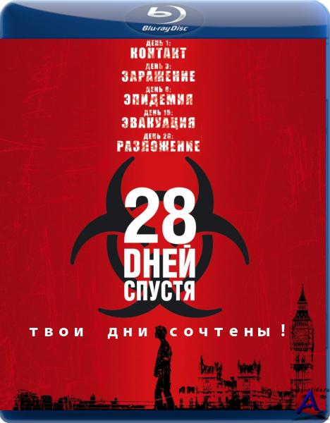 Качество: HD Видео кодек: MPEG4 Video (H264) 1280x688 23.98fps Аудио кодек: Dolby AC3 48000Hz 6ch Перевод: дубляж Качество: HD Видео кодек: MPEG4 Video (H264) 1280x688 23.98fps Аудио кодек: Dolby AC3 48000Hz 6ch Перевод: дубляж Жанр: ужасы, фантастика, боевик, триллер Премьера в мире: 1 ноября 2002 Премьера в РФ: 29 января 2004, «Гемини Киномир» Рейтинг mpaa: R - Лицам до 17 лет обязательно присутствие взрослого Продолжительность: 113 мин. Доп. информация: Бульшая часть фильма (105 минут) снята на MiniDV-камеру Canon XL1S’ (хоть и с довольно хитрой навесной оптикой) — для большей аутентичности (по той же причине Бойл набрал практически безызвестных актёров). Поэтому практически весь BD-трансфер является, по сути, качественным студийным апскейлом, кроме финальной сцены, в ней и можно увидеть картинку в полноценном 720р.[/b] (два последних скриншота) Информация о фильме: Группа «зеленых» экстремистов вторгается в центр исследования приматов и выпускает из секретной научной лаборатории обезьяну, зараженную вирусом неудержимой агрессии. Смертельный вирус, передающийся через кровь за считанные секунды, приводит к мгновенному заражению, и, соприкасаясь с любым живым существом, превращает его в кровожадного монстра. Через 4 недели вся Англия охвачена страшной эпидемией: многие люди эвакуируются, другие ищут безопасные места, в надежде спастись. Те, кому посчастливилось не заразиться, вместе с группой военных прячутся в заброшенном доме. Вместе им предстоит разобраться в ситуации и попытаться ее исправить