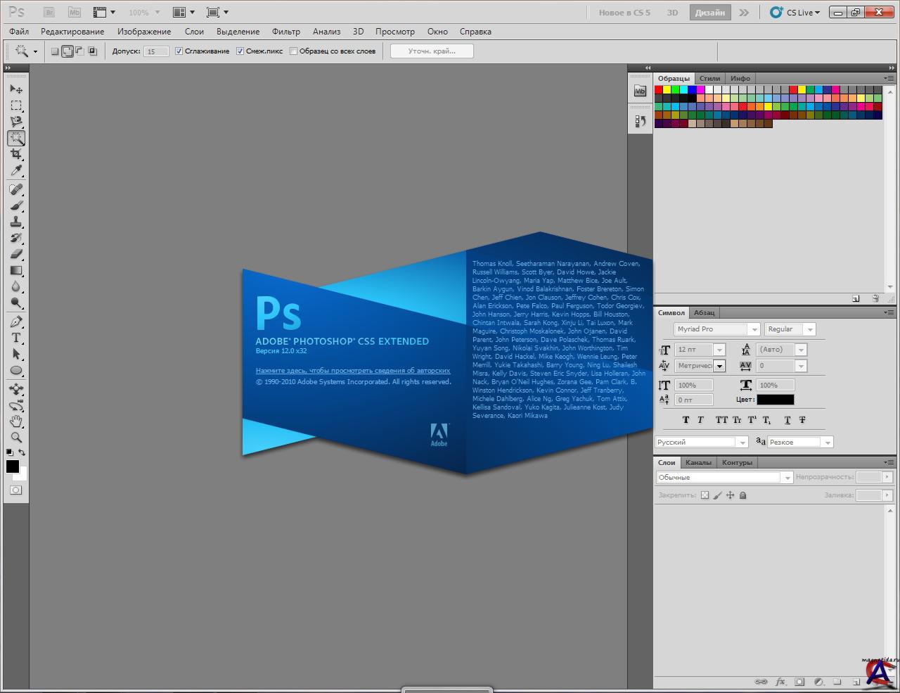 Версия: CS5 Extended Активация: Есть Язык интерфейса: Русский/Английский Описание:Adobe Photoshop Extended обладает всеми возможностями Photoshop, предлагая расширенную функциональность и открывая новые способы работы с цифровыми изображениями, трёхмерными объектами и анимацией. Предоставляет весь спектр данных об обрабатываемых материалах. Adobe Photoshop Extended — решение для мультимедиа-дизайнеров, занятых в различных отраслях: кино- и видеоиндустрии, архитектуре, проектировании, промышленности, медицине или науке. Adobe Photoshop позволяет полноценно работать с разнообразным 3D-контентом, многослойными изображениями и изображениями с расширенным динамическим диапазоном (HDR) на профессиональном уровне, получая на выходе материалы высокого полиграфического качества. Преимущества Adobe Photoshop Extended: — Удобная динамическая панель регулировки для доступа ко всем необходимым инструментам для коррекции цвета и тонирования изображения, стилям и прочим средствам редактирования. — Модернизированный интерфейс. — Поворот холста одним щелчком мыши под любым углом. — Интеллектуальное масштабирование. — Попиксельное редактирование изображений путём максимального увеличения отдельных участков без потери чёткости. — Усовершенствованные средства редактирования анимационной графики. — Просмотр фотоколлекции в удобном формате: на вкладках или в формате мозаики. — Полная интеграция с новейшими моделями принтеров, предпечатный просмотр, поддержка 16-разрядной печати на Mac OS. Новые функции дизайна в Adobe Photoshop CS5 Extended: Превосходные эффекты рисования Купив Adobe Photoshop CS5 Extended, вы сможете создавать реалистичные эффекты рисования при помощи новых средств: инструмента «Микс-кисть», который позволяет смешивать цвета прямо на холсте, настроек различных параметров кистей для выполнения мазков с имитацией реальной текстуры, экранной палитры цветов и многих других возможностей. Заливка с учетом содержания изображения Удаляйте любые элементы изображения с интеллектуальным заполнением пустой области с учетом содержимого окружающих областей. Эта качественно новая технология в Photoshop CS5 Extended учитывает такие характеристики изображения, как освещение, тона и шумы, и идеально заполняет область на месте удаленного объекта. Простое выделение сложных областей С легкостью выделяйте сложные элементы изображений, например волосы, для корректировки, композитинга или помещения на макет. Автоматически изменяйте края выбранной области, удаляйте фоновые цвета вокруг них и корректируйте маски, используя новые инструменты. Создание 3D-форм с помощью Adobe Repousse Применяйте технологию Adobe Repousse для создания 3D-логотипов и графических объектов, используя любые текстовые слои, элементы, контуры и слои-маски. Применяйте к объектам эффекты, такие как закручивание, вращение, выдавливание, скос и искажение. Улучшения в Adobe Photoshop CS5 Extended: Улучшенная обработка изображений HDR Создавайте с Photoshop CS5 Extended изображения HDR в любых направлениях — от фотореализма до сюрреализма — с исключительной скоростью, гибкостью и точностью. Самые современные инструменты для обработки изображений в формате RAW Выполняйте обратимое удаление шумов изображения, сохраняя при этом настройки цветов и четкость элементов, добавляйте зернистость, придавая цифровым изображениям более естественный вид, оцените возможности более 