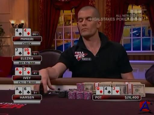 Качество: SATRip Видео кодек: XviD, 512x384, 1008 kbps Аудио кодек: MPEG-1 Audio layer 3, 2 channels, 128 Kbps Продолжительность: ~ 43 мин Перевод: Профессиональный (двухголосый, Английский) Формат: AVI Информация о фильме: Очередной сезон одной из самых популярных программ о покере. Как и прежде, в игре примут участие сильнейшие профессионалы, которые будут радовать нас интересной игрой с большими суммами $. Минимальный бай-ин равен $200 000, максимальный $500 000, блайнды $400/$800. Участники: Phil Hellmuth, Phil Ivey, Andreas Hoivold, Daniel Negreanu, Gus Hansen, Tom Dwan, Antonio Esfandiari, Dario Minieri, Eli Elezra, Jason Mercier, Dennis Phillips, Barry Greenstein, Andrew Robl, Patrik Antonius, Lex Veldhuis и др.