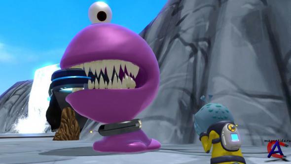 Системные требования: ОС: Windows XP / Vista • Процессор: Intel Pentium 4 2,2 GHz / AMD Athlon 64 2200+ • RAM: 1 GB • Видеокарта: nVidea Geforce 7600 / ATI Radeon HD2400 • HDD: 300 MB Описание: Игра The Maw – идеальный вариант для тех, кто хочет за сравнительно небольшие деньги весело провести время. Проект, созданный студией Twisted Pixel Games – это типичная инди-разработка с каким-то магически увлекательным геймплеем. Причем, за все удовольствие с вас возьмут чуть больше девяти долларов. Ну, а продается игра, как водится, исключительно цифровым путем через систему Steam или XBLA. На первый взгляд The Maw – развлечение исключительно для детей ясельного возраста или впечатлительных дам. Просто взгляните на скриншоты поблизости – все эти зеленые полянки, какие-то ящерицы, жизнерадостный главный герой не вызывают доверия у тех, кто только вчера покинул мрачные застенки The Chronicles of Riddick: Assault on Dark Athena. Обретая новый талант, Maw (а именно так зовут розовую субстанцию) испускает леденящий душу вопль. Впрочем, не торопитесь с выводами. Игра не только сугубо жизнерадостная, она сделана с любовью, да и увлекает не на шутку. Так что познакомиться с ней поближе стоит даже прожженным игрокам – Twisted Pixel Games сделали интересный и чрезвычайно забавный платформер. Полноценного сюжета в The Maw отыскать не удалось. Начинается шоу с того, что некоего гуманоида-инопланетянина бросают в тюрьму крепкие бойцы непонятно какой организации. За какие грехи герой очутился за решеткой – тоже покрытая мраком тайна. Впрочем, бедняге повезло: космический корабль неожиданно терпит крушение, и наш подопечный оказывается на свободе. Правда, не один. Из соседней камеры на волю выпрыгнула некая розовая субстанция. Она похожа на пудинг, обладает только одним глазом где-то в районе лба и наделена каким-то нереальным аппетитом. В бывшем заключенном, впрочем, прожорливый колобок неожиданно признал хозяина, так что сразу жрать его не стал. Спустя пять минут после катастрофы жизнь налаживается окончательно: герой находит чудо-девайс, который, что называется, десять в одном. Это «поводок» для безумного розового пудинга (чтобы не убежал куда подальше), с его же помощью позволяется хватать многочисленные объекты на уровнях и каким-нибудь образом их использовать. Прожорливого друга стоит водить на поводке. Чтобы не убежал, куда не следует. Вместе весело шагать Мы уже как-то начали привыкать к тому, что разработчики постоянно приставляют к главным героям напарников. Вспомните хотя бы Fable 2, Gears of War 2, Army of Two и т.д. Так вот, в The Maw беглый заключенный и его зубастый дружок – практически единое целое, а друг без друга – никуда. На чревоугодии розового монстра, например, строится весь геймплей. В начале игры он в промышленных количествах лопает какие-то милые розовые шарики, которые можно отыскать практически под каждой елкой. Поглотив энное количество обитателей лесов, зубастик подрастает, так сказать, в уровне. После этого он, во-первых, заметно увеличивается в размерах, во-вторых – обретает возможность охотиться на крупную дичь. К концу игры от такой диеты розовый пузырь превращается в ходячую громадину размером с дом, так что не по себе становится и главному герою. Впрочем, главная прелесть розовощекого в том, что он умеет временно перенимать способности съеденного существа. На этом, к слову, базируются решения как минимум половины здешних головоломок. Напри