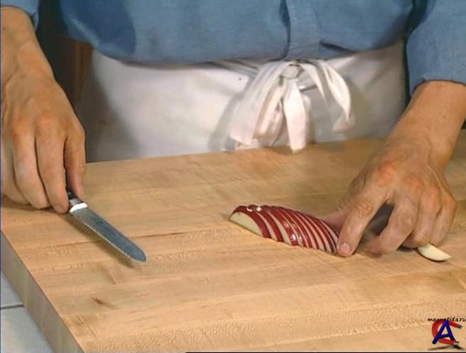 Качество: DVDRip Видео кодек: XviD, 656x496, 2243 kbps Аудио кодек: AC3, 2 ch, ~192.00 kbps Продолжительность: 40 минут Перевод: оригинал Формат: AVI Информация о фильме: Все мы здесь, без сомнения, умеем готовить , но не все знаем что, как и каким ножом быстро и правильно нарезать, нашинковать или разделать....... и при этом не оттяпать себе какую либо часть тела. Целью данного видео является привить вам знания и навыки в обращении кухонными ножами, выпускаемых в мире. Шеф-повар Джим продемонстрирует основные элементы техники разделки наиболее часто используемыми типами столовых ножей. Даже не зная английского языка, видео абсолютно понятно, все объяснения сопровождаются наглядными примерами....