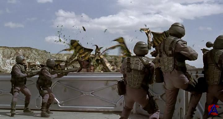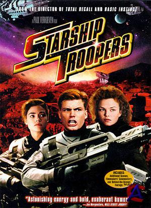 Формат: AVI Качество: DVDRip Видео кодек: XviD 2019 Kbps 720x384 23.976fps Аудио кодек: 384 Kbps AC3 48000Hz 6ch Жанр: фантастика, боевик, триллер, приключения Перевод: дубляж Премьера в мире: 4 ноября 1997 Продолжительность: 129 мин. Рейтинг mpaa: R - Лицам до 17 лет обязательно присутствие взрослого Информация о фильме: В новом тысячелетии над человечеством нависла смертельная опасность. Несметные полчища гигантских разумных жуков с далекой системы планет Клендату угрожают всему живому во вселенной. Солдат элитного подразделения Джонни Рико и пилот Кармен в составе звездного десанта Землян на космическом военном корабле Тикондерога отправляются в зловещие глубины космоса, чтобы в последней решающей схватке решить судьбу Земли. В их руках — современнейшее оружие и будущее людской расы.