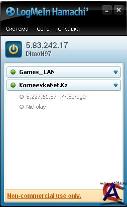Версия: 2.0.1.66 Язык интерфейса: Rus Описание: Программа для организации связи между компьютерами через сеть Интернет. Hamachi позволяет при помощи VPN (виртуальная частная сеть) соединения объединить два и более компьютера в сеть, которая использует для передачи данных протокол UDP. Такая сеть работает как локальное соединение компьютеров и дает такие же возможности. С помощью Hamachi можно играть в игры, обмениваться файлами, печатать на удаленном принтере и т.д. Программа безопасна в использовании, благодаря применению шифрования и аутентификации, а также надежной NAT технологии, которая обеспечивает компьютерам в сети внутренние IP-адреса. Для настройки соединения не требуется глубоких знаний, достаточно указать имя компьютера, чтобы программа зарегистрировала новый аккаунт и присвоила уникальный идентификатор. Особенности: Отличная программа, позволяющая создавать прямое соединение между компьютерами через Интернет, таким образом организовывая локальную сеть между группой пользователей. Благодаря Hamachi можно предоставлять общий доступ к файлам, чатиться и играть в любимые игры по Сети (как по локальной сети), например в тех же героев 3. Системные требования: Windows 9x, Windows 2000, Windows 2003, Windows XP, Windows NT, Windows Me, Windows Vista TPEБУЕТСЯ Интернет!