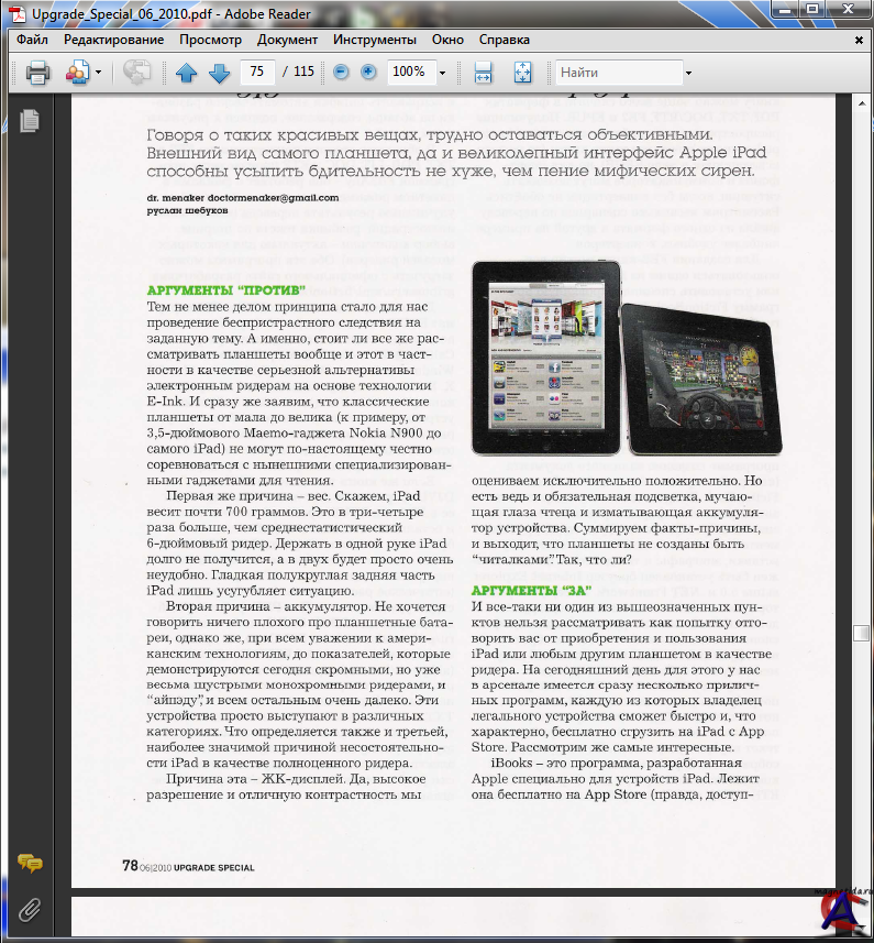 Название: Upgrade Special №6 Месяц и год выпуска: Июнь 2010 Язык: Русский Количество страниц: 115 Формат: PDF Качество: Отсканированные страницы Описание: Журнал "Upgrade Special" - это аналитическое издание, рассматривающее компьютерные продукты и решения в контексте тенденций развития информационных технологий. Журнал посвящен компьютерным комплектующим, периферии, компьютерам всех классов – от обычных ПК до многопроцессорных серверов и мобильных решений (ноутбуков и КПК), сетевым решениям. Особое внимание уделяется актуальным для текущего периода продуктам, а также новым и перспективным. Ежемесячный компьютерный журнал, который ориентирован на решение конкретных проблем, возникающих у продвинутых пользователей персонального компьютера в процессе его эксплуатации.