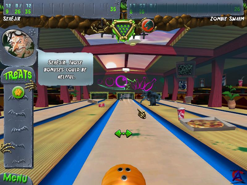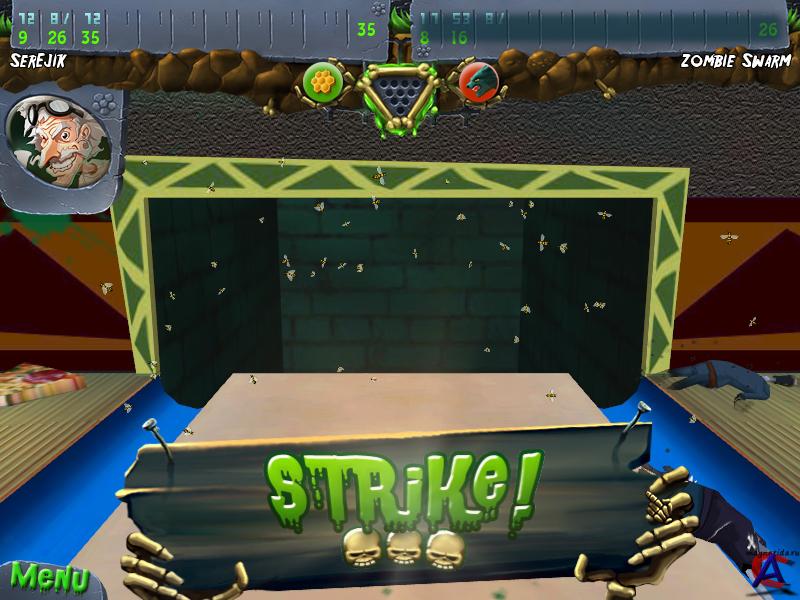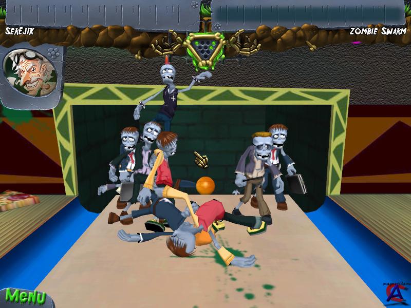 Язык: English (Знание не требуется) Лекарство: не требуется Размер: 33,3 МБ Играть возможно как с компьютером, так и против друг друга Системные требования: - Платформа: PC - Windows ALL - DirectX 8.1 - 1 GHz - 256 MB RAM Зомби играют в боулинг в качестве кеглей!!! Что может быть прикольнее!!! Толпы мертвяков пытаются высосать Ваши мозги. Не дайте им это сделать. Мочите их, с использованием различных приёмов и бонусов. Игрушка включает в себе разнообразные виды дорожек и шаров для боулинга, несколько видов сложности и прикольную озвучку.