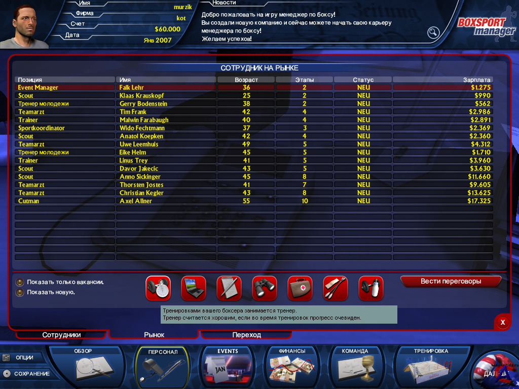 Worldwide Boxing Manager / Бокс. Короли ринга Год выпуска: 2007 Жанр: Strategy (Manage/Busin. / Sport (Boxing) / 3D Разработчик: Proline Software Издательство: Новый Диск Тип издания: лицензия devsite: www.nd.ru/catalog/products/boxingkingring/ Язык интерфейса : (локализатор) только русский (Новый Диск) Платформа: PC Системные требования: * Операционная система Microsoft® Windows® 2000/XP * Процессор Pentium® III 1 ГГц или аналогичный Athlon® * 256 МБ оперативной памяти * 500 МБ свободного места на жестком диске * 3D-видеоадаптер с памятью 128 МБ, совместимый с DirectX® 9.0c (GeForceFX 5200 или Radeon 9500) * Звуковое устройство, совместимое с DirectX® 9.0с * DirectX® 9.0c * Устройство для чтения компакт-дисков Описание: Бокс. Короли ринга Поклонников бокса в России немало, а вот с играми на эту тематику все обстоит не так радужно. Менеджер «Бокс. Короли ринга» — одна из немногих игр, заполняющих этот пробел, — позволяет почувствовать себя великим промоутером и воспитать своих собственных чемпионов, покруче Майка Тайсона. Игрокам предлагается окунуться в боксерское закулисье и самим изучить все его закоулки. Начинающему Дону Кингу придется подбирать хороших тренеров, талантливый персонал, договариваться о проведении боев и активно их рекламировать. Непосредственно во время боя можно побывать в роли тренера: менять тактику, давать ценные указания своему подопечному. Особенности продукта: * Весь мир бокса — раскрутка, менеджмент, тренировки и матчи! * 3 профессиональные боксерские федерации, несколько весовых категорий * Под началом игрока — до 20 спортсменов * Возможность не только выбирать из существующих, но и создавать своих собственных боксеров! Доп. информация Монтируем Образ в Daemon Tools