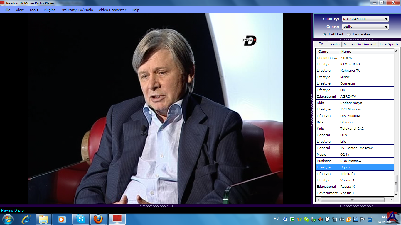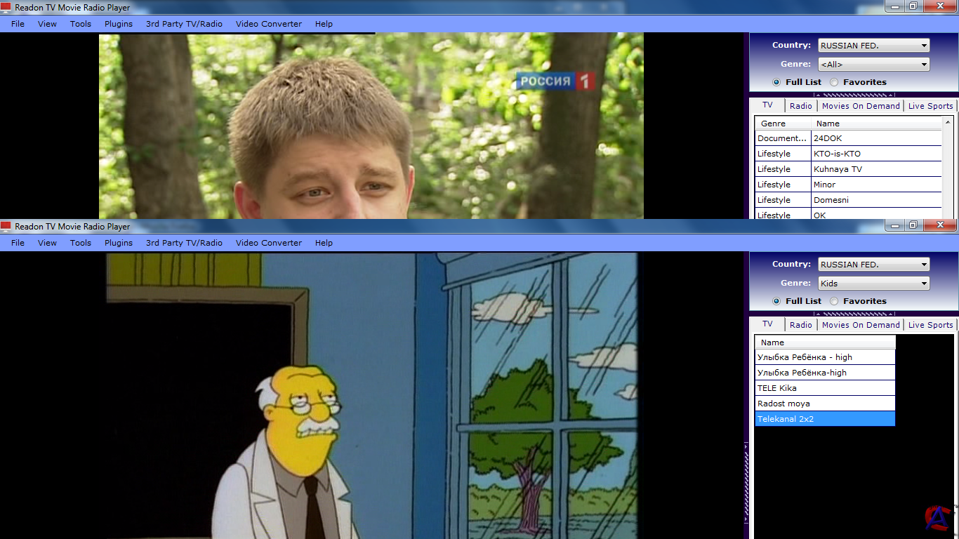 Язык: английский Таблэтка: нетребуется Readon TV Movie Radio Player позволяет слушать радио, смотреть телевизионные передачи и иметь доступ к новейшим фильмам в Интернете. Все, что вам нужно, это компьютер с ОС Windows и подключение к Интернету. Нет необходимости в приобретении и установке платы ТВ-PC, поскольку телевизионные каналы являются потоковыми через подключение к Интернету. Это, вероятно, самый лучший (и еще и бесплатно)для вас способ получить доступ к интернет теле и радио передачам. Особенности: