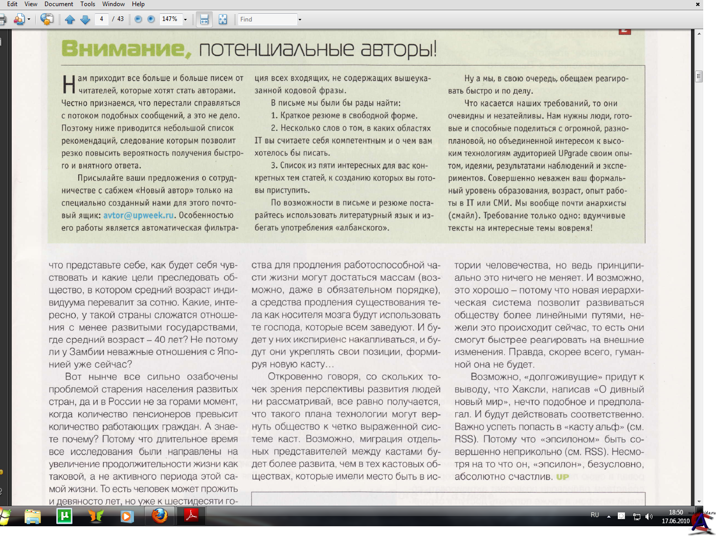 Описание: Еженедельный журнал о компьютерах и компьютерных технологиях, который стал первопроходцем на рынке массовых изданий о высоких технологиях. UPgrade – первое издание для широкого круга читателей, которых интересует не только сам по себе апгрейд компьютера, но и все, что так или иначе связано с миром IT.