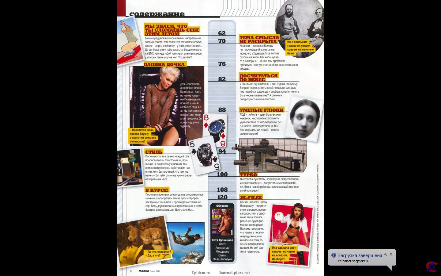 Язык: Русский. Страниц: 112. Формат: pdf. Описание: MAXIM пропагандирует скорее стиль мысли – специфический интеллигентно-философски-озорной взгляд на окружающий нас мир. Формально круг интересов журнала – стандартный для мужских изданий, но способ подачи этих материалов в MAXIM всегда остается авторским и нетривиальным. При этом исключительное качество съемок, текстов и иллюстраций является одним из приоритетов этого издания. Это высокопрофессиональный глянец в самом лучшем смысле этого слова. Журнал MAXIM основан в Великобритании в 1995 году и сегодня издается в 42 странах мира, то есть практически в каждом пятом государстве, а общее число его читателей превышает 10 миллионов.