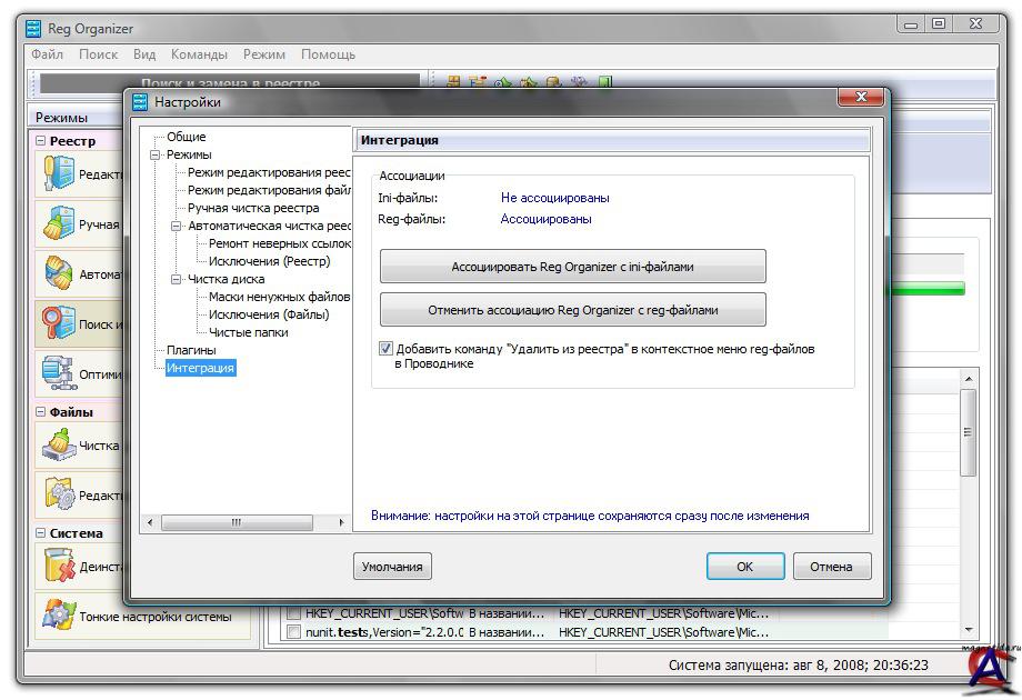 Язык интерфейса: Английский (русификатор в наличии) Таблэтка: Серийник в папке Системные требования: Любая 32-битная версия Microsoft® Windows® 95/98/ME/NT4.0/2000/XP/2003/Vista. Описание: Reg Organizer® - это многофункциональная программа для чистки реестра и его обслуживания, а также работы с конфигурационными файлами. Позволяет просматривать и редактировать системный реестр, осуществлять предварительный просмотр импортируемых reg-файлов (в том числе и из Проводника). Функция поиска в реестре предоставляет возможность производить глубокий поиск в реестре, находя все ключи, относящиеся к интересующему приложению. Также Reg Organizer поддерживает функции управления конфигурационными файлами различных типов. Основные возможности программы: # Редактор реестра для просмотра и редактирования системного реестра, позволяющий производить различные операции c ключами и значениями системного реестра, экспортировать и импортировать значения ключей и т.д. # Функция чистки реестра для поиска ненужных записей в реестре, а также для поиска и исправления проблем в реестре. # Функция поиска в реестре позволяет найти ключи, относящиеся к интересующему Вас приложению, и удалить их при необходимости. Это полезно, например, в случае, когда какое-либо приложение не имеет программы деинсталляции и после его удаления "вручную" в реестре остаются ненужные записи, которые могут приводить к некорректному функционированию других приложений. В то же время, Reg Organizer производит более глубокий поиск и позволяет зачастую найти даже те ключи, связанные с данным приложением, которые не будут найдены другими аналогичными программами. # Дефрагментация и сжатие реестра. Эти процедуры позволяют повысить скорость работы с реестром и, как следствие, скорость работы Вашей системы в целом. # Возможность изменения многих "тонких настроек" Windows (tweaks). В частности, Вы можете ускорить работу Вашей системы, приказав системе использовать кэш-память большего объема, или заставив систему выгружать неиспользуемые библиотеки из памяти и т.д. # Возможность получать информацию о любом ключе реестра и следить за изменениями в нем. # Предварительный просмотр файлов реестра (*.reg) перед импортом их содержимого, в том числе и непосредственно из Проводника. При просмотре импортируемого reg-файла его содержимое представляется в виде древовидной структуры, что позволяет представить в наглядной форме все ключи, которые будут импортированы в реестр. # Просмотр и редактирование автоматически запускаемых программ, т.е. приложений, которые загружаются при старте Windows или входе в систему. # Режим поиска и замены в реестре представляет собой удобный инструмент для нахождения (и, при необходимости, изменения) ключей или параметров системного реестра, отвечающих критериям поиска. # Встроенная функция деинсталляции любых приложений. Она может сделать "снимок" системы до и после установки приложения, после чего можно полностью "откатить" внесенные в систему изменения, как будто приложение не было установлено. # Инструмент "Чистка дисков" позволяет производить автоматическую чистку жестких дисков вашего компьютера от различных ненужных файлов, а также выполнять поиск и исправление неверных ярлыков. # Управление конфигурационными файлами. С программой Reg Organizer Вы можете открывать и редактировать (добавлять, изменять, удалять