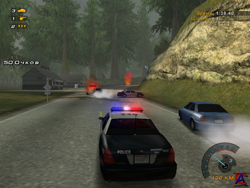 Три незыблемых столпа — роскошные машины, безумные скорости и способность заставлять нас лишаться последних средств к существованию ради новой видеокарты — поддерживают HP2 в полной мере. Автопарк обсуждался давно и восторженно, с тех пор, как нам показали полный перечень моделей. Шутка ли, два с лишним десятка представителей элиты автомобилестроения, начиная с просто шикарных BMW M5 и Porsche 911 Turbo и заканчивая недосягаемыми Lamborghini Murcielago и Ferrari F550 Barchetta, — в вашем полном распоряжении. Четырехколесные монстры, правда, смахивают на дешевые игрушки, вроде тех, что появились в начале 90-х на прилавках детских магазинов: вроде красиво, а на деле — настоящая "болванка"; после советских моделей, у которых открывались двери и снимались покрышки, подобное издевательство напрочь отбивало охоту пополнять свою коллекцию. Применительно к HP2 в сложившейся ситуации виноваты автоконцерны, не желающие, чтобы машины их марок, пусть даже и виртуальные, превращались в груду искореженного железа. Максимум, который позволила разработчикам лицензия, — распахивающийся от ударов багажник, болтающаяся крышка капота и вялые царапины. Собственно, вопрос был поставлен ребром, и принятое решение вряд ли вас порадует… Физика уничтожена. Зрелищные коллизии, кувырки, перевороты и прочие инциденты ни в коей мере не влияют на ходовые качества автомобиля. Новый стиль вождения отныне таков: ударов о бортики можно не избегать, надо только стараться не терять на этом времени.