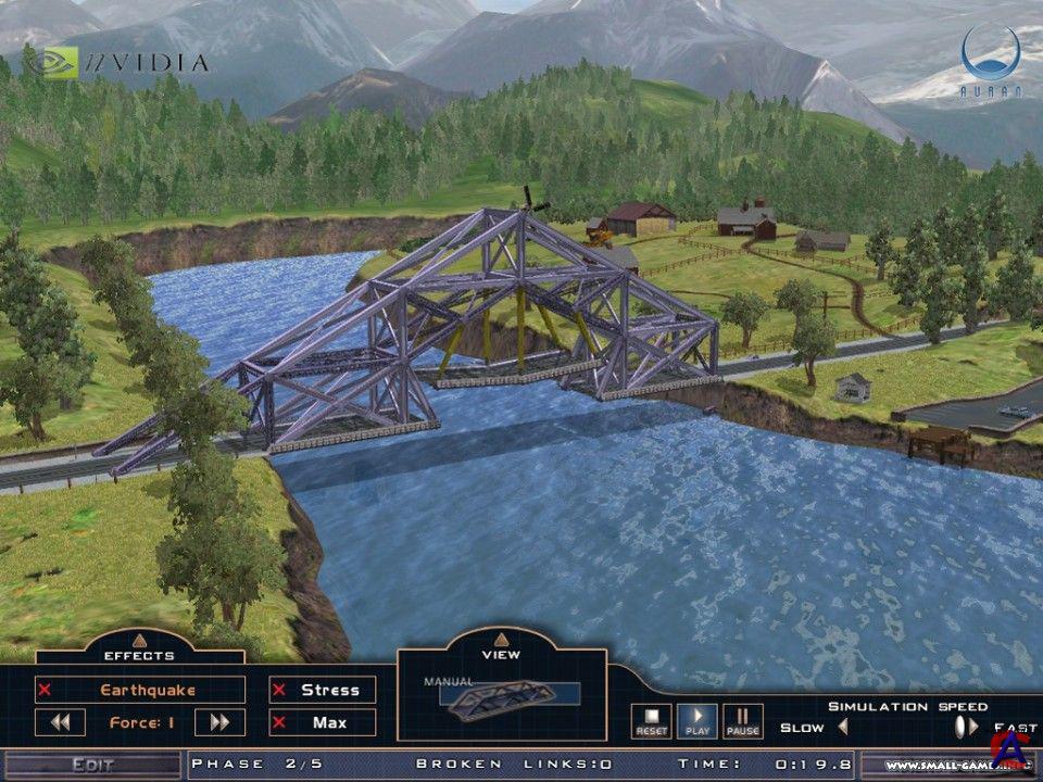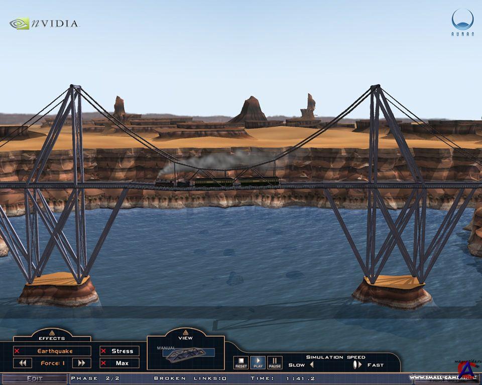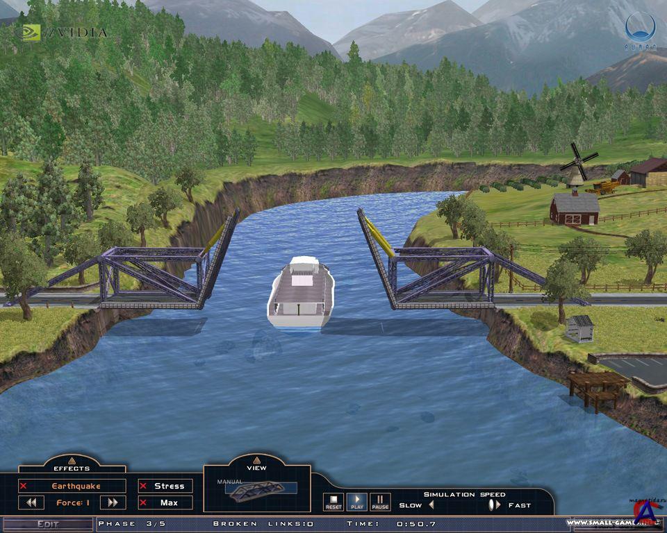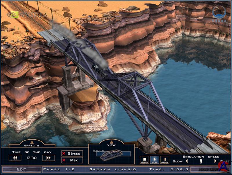 Платформа: PСТип издания: ПираткаЯзык интерфейса: Только английскийЯзык озвучки: ОригиналТаблетка: Не требуетьсяОписание:Данная игра представляет собой Pontifex в грандиозно красивой упаковке. Уникальное совместное творение двух компаний: калифорнийской компании-разработчика Chronic Logic, ответственной за дизайн игры, и австралийской графической студии Auran, вложившей в игру мощную и впечатляющую графику. Но, благодаря очень дружественному интерфейсу, процесс мостостроения в игре не так сложен, как может представиться в первый момент: игроки размещают узловые точки моста и балочные фермы очень просто — одним или двумя кликами мышки. В конечном счете, целью является создание недорогого и в то же время прочного моста, который бы выдержал тестовое давление транспортных средств.BridgeIT - замечательная игра в духе Bridge builder. Программа, созданная студией Chronic Logic, как демонстрация возможностей видеокарт nVidia. Движок был столь хорош, что в последствии при содействии студии Auran Games была разработана логическая игра со столь простым и затягивающим геймплеем. Если посмотреть на геймплей, то мы увидим все стандартные и знакомые нам материалы (сталь, металл, тросы) также во время краш-теста можно смотреть напряжение на отдельных участках дорог. Но перенос игры в 3D, это нечто - просто посмотрите из окна поезда, который терпит крушение, хотя может у вас их и не бывает ;)