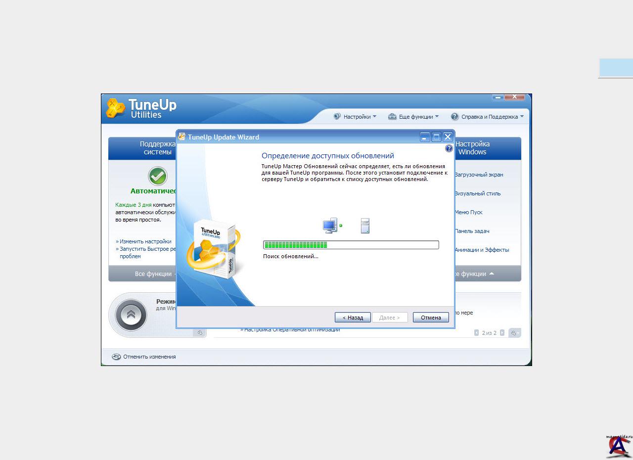 Версия: TuneUp Utilities 2010 9.0.4300.7 [RePack] (2010) Активация: запустить файл .exe и все ..читай особенности RePackа !!! Особенности RePackа: возможность установки на английском и русском языке (выбор производиться автоматически,зависимо от языка ОС) программа зарегистрирована программа русифицирована (автор русификатора Владимир Филатов) окно об обновлении программы отключено удаленны только две ненужные службы (TuneUp. UtilitesSvc и TuneUp.Defrag) которые ничего полезного не делают а только кушают ресурсы возможность тихой установки с ключом /q протестирована на Windows 7 x86 and x64 Язык интерфейса: Русский / Английский Описание: TuneUp Utilities 2010 - новая версия большого набора всевозможных инструментов для настройки и оптимизации системы. При помощи этой программы вы сможете очищать диски от мусора, удалять неверные записи из системного реестра и дефрагментировать его, оптимизировать оперативную память, управлять автозагрузкой, навсегда удалять файлы с диска при помощи специальной утилиты ”TuneUp Shredder” (дальнейшее восстановление становится невозможно даже при помощи специальных программ), восстанавливать удаленные файлы, изменять внешний вид Windows, и многое другое. Все утилиты этого пакета объединены в единую графическую оболочку. Для запуска той или иной утилиты нужно выбрать ее название в списке и кликнуть по ней мышкой. После этого открывается диалоговое окно, в котором и производятся все соответствующие действия. Настройка и Анализ: Включает в себя менеджер автозагрузки (TuneUp StartUp Manager), твикер интерфейса Windows (TuneUp WinStyler), "Системные сведения" (TuneUp System Information) и "Общие системные настройки" (TuneUp SystemControl). Отличительной особенностью менеджера автозагрузки является то, что в его настройках можно установить индивидуальный для каждого пользователя список программ. Раздел "Системные сведения" содержит подробную информацию об установленном аппаратном обеспечении, а также объеме занимаемой памяти, версии установленной Windows и т. д. Очистка и Ремонт: В этом разделе можно найти две утилиты - для очистки компьютера от временных файлов (DiskCleaner), и утилиту для определения неполадок в системном реестре (RegistryCleaner). Эти инструменты тонкой настройки системы очень просты в обращении и представляют собой два мастера с пошаговыми инструкциями. Оптимизация и настройка: Эта группа включает в себя дефрагментатор системного реестра (RegistryDefrag), утилиту для работы с оперативной памятью (MemOptimizer) и большое количество системных настроек (System Optimizer), позволяющих максимально увеличить эффективность работы Windows. Подобрать наилучшим образом системные настройки поможет специальный модуль System Advisor, который произведет анализ работы компьютера и предоставит информацию о том, какие необходимо внести изменения пользователю, чтобы увеличить производительность системы. Администрирование и управление: Здесь можно найти полноценный редактор системного реестра Registry Editor, с помощью которого можно производить поиск и редактировать записи, менеджер процессов (Process Manager) и утилиту для корректного удаления установленных приложений (Uninstall Manager). Восстановление и удаление файлов: Последняя категория настроек содержит инструменты для работы с файлами - утилиту для восстановления информации (Undelete) и инструмент для удаления конфиденциальных данных без возможности восстановления данных (Shredder). Среди дополнительных во