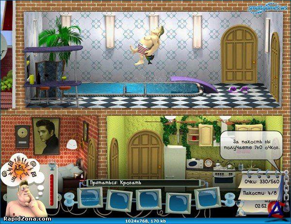 Год выхода: 2008 Жанр: Arcade Разработчик:GFI Издатель: Руссобит-м Язык: Только Русский Платформа:PC Таблетка: Не требуется Пятый эпизод популярного сериала про хитроумного главного героя и вредного Соседа. На этот раз борьба завязалась на самом высшем уровне. Русский разведчик Пулин получил оперативное задание: вывести из себя американского шпиона Арнольда Рубинштейна... Концепт игры не поменялся со времен первой серии, только графика стала гораздо приятнее, ловушки хитроумнее, а сосед - злее. Особенности игры: - Долгожданное продолжение знаменитой аркадной серии - 13 отвязных эпизодов - Стильная мультяшная графика в полном 3D - Удобный интерфейс и простое управление - Отличный саундтрек - Не дай Родину в обиду врагам! Системные требования: Windows xp/Vista/7 Pentium IV 1,7 ГГц / AMD Athlon 1700+, 512 Мб RAM, 720 Мб свободного места на жёстком диске, GeForce 3 или Radeon 8500, DirectX 9.0c, DirectX-совместимая звуковая карта, Клавиатура, мышь.