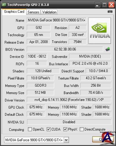 Платформа: Windows XP/Vista/7 Версия: 0,4,3 Язык интерфейса: русский Таблетка: не требуется Системные требования: минимальные Инструкция по установке: кликнуть 2 раза =) Описание: Утилита, позволяющая выводить информацию об установленном в компьютере графическом адаптере (видеокарте). TechPowerUp GPU-Z поддерживает карты NVIDIA и ATI. С помощью этой небольшой утилиты можно узнать какая у вас модель видеокарты, определить интерфейс подключения, какой используется графический процессор (версия BIOS, номер ревизии чипа, частота в 2D, 3D-режимах и при разгоне, сведения о поддержке DirectX). Кроме этого, TechPowerUp GPU-Z предоставляет информацию о видеопамяти - ее тип, объем, разрядность шины.