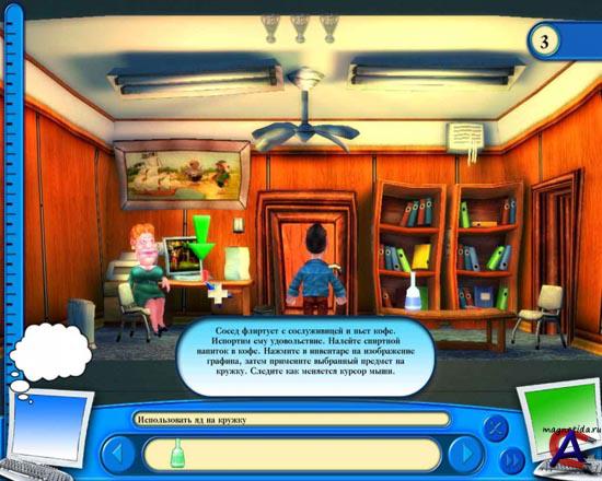 Название: Как достать соседа 4.На отдыхе Год выхода: 2008 Жанр: Arcade / 3D Язык: русский Минимальные системные требования: Windows 2000sp4 / XPsp1 Intel 800 Мгц/ AMD 850 Мгц 256 MB ОЗУ 1 ГГб свободного места на HDD Direct3D 8.0-совместимая видео-карта с 32 Мб видео-памяти DirectX 9.0c DirectX-совместимая звуковая карта 32х CD-ROM Клавиатура, мышь Об игре: Давно началась эта война… Никто не помнит, что послужило поводом жестокой схватки… Как это никто не помнит? А зачем было сверлить стены ранним субботним утром? Кто стучал втихаря начальству по поводу и без? Чьи мусорные пакеты благоухают на весь подъезд? Кто вламывался без приглашения на День Рождения? Да, это опять он – Сосед!!! Никакой пощады паразиту! Дом отдыха, значит? Хе-хе, счастливо отдохнуть… Особенности игры: * 15 эпизодов – доставать начнем с отъезда и до последней минуты адского отпуска * 10 колоритных персонажей, характерных для каждого дома отдыха * около 90 способов довести ненавистного Соседа до ручки; * порция здорового юмора * оригинальная мультяшная 3D-графика, знакомая по предыдущим частям
