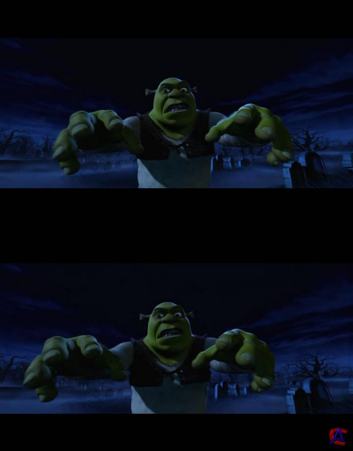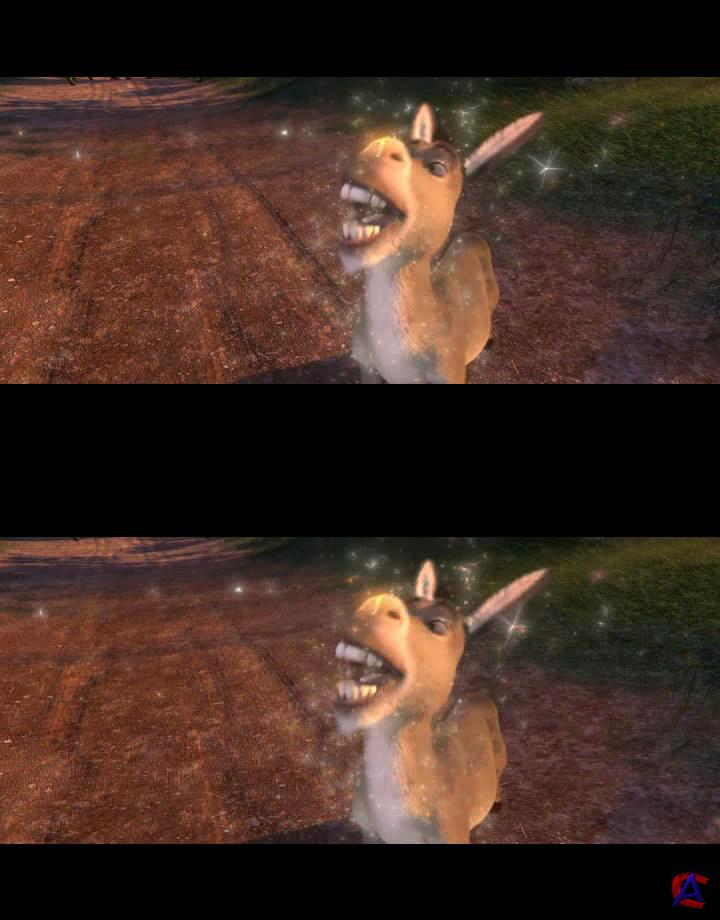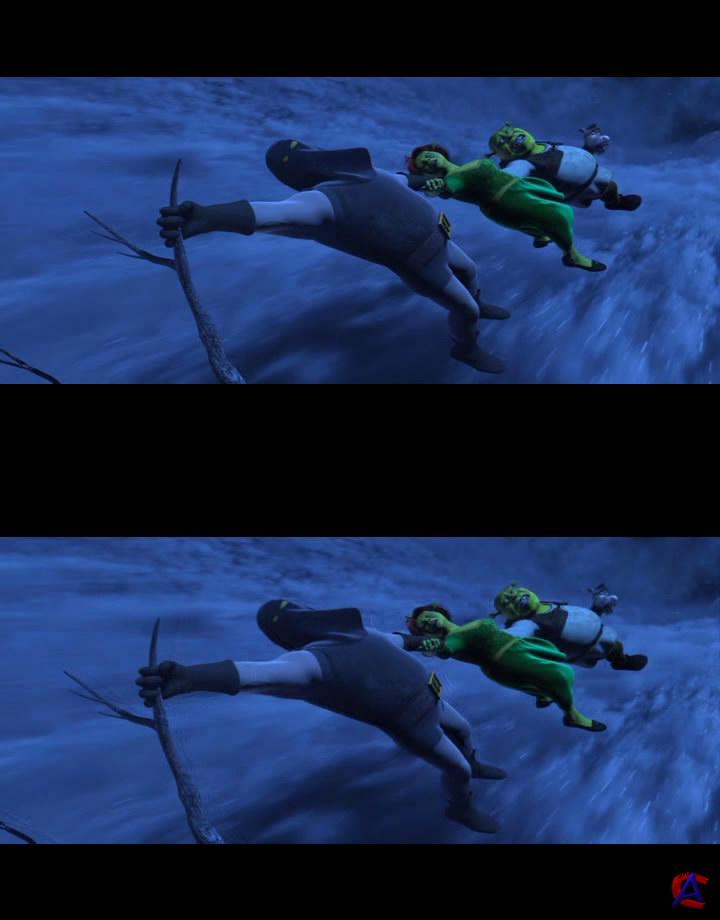 Качество: DVDRip Видео кодек: DivX Аудио кодек: Mp3 Видео: 720x920, 25 fps Аудио: 50.100 kHz, 2канала Продолжительность: 00:14:49 Перевод: Любительский (одноголосый) Формат: Avi Информация о фильме: Шрек и Осёл захотели найти клад указанные на карте сокровищ, но вдруг Фиону похищает тёмный палач, прямо на глазах у Шрека и увозит её в тёмный лес. Шрек и Осел устремляються на поиски принцессы... Доп. информация: Side-by-Side (Вертикальная стереопара) Эта версия предназначена для проигрования специальным стереоплеером(например Stereoscopic Player) для достижения 3D эффекта.