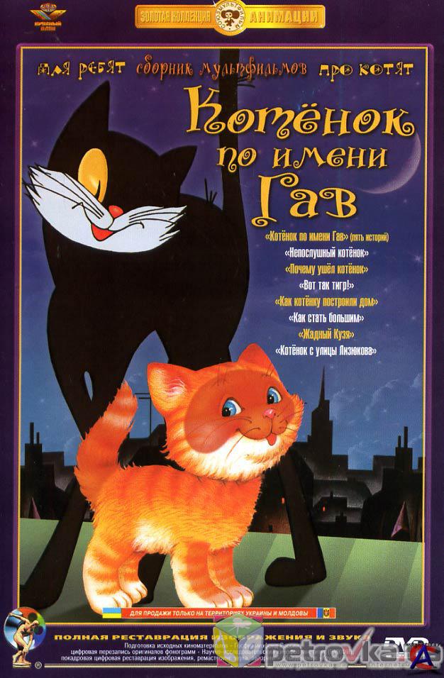 Качество: MPEG-4 Видео кодек: 640х480 25 fps, 1344 kbps Аудио кодек: 48кГц, 1ch, 96kbps Жанр: мультфильм, короткометражка, Перевод: не требуется Продолжительность: 9 мин. Информация о фильме: Мультфильм рассказывает о приключениях котёнка с необычным именем Гав и его друга щенка.