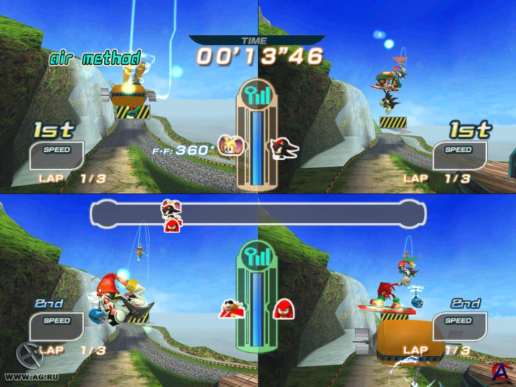 Описание: У вас в руках ни что иное, как новые приключения старого полюбившегося героя Соника, которого мы помним ещё со времен старых игровых приставок. Злобный Доктор Эггман на этот раз будет соревноваться с Соником и его друзьями в заездах мирового Гран При.Призом для лучшего из лучших станет невероятно редкий изумруд. Катайтесь на удивительных воздушных досках и получите отличный заряд острых ощущений, невероятный спортивный дух и порывы свежего ветра в лицо. Под вашим чутким руководством Соник и товарищи будут выделывать умопомрачительные трюки и фигуры высшего пилотажа на красочных просторах удивительного мира. Супер-ёжик с друзьями будет носиться по трекам на своих досках и использовать уникальные для каждого из них приемы чтобы устранить вечно путающихся под ногами оппонентов. Топливом для ваших досок будет служить... воздух! Кроме того, вы можете попонять запасы мощностей, выделывая невероятные трюки, или используя турбулентные потоки впереди идущих оппонентов. Спешите присоединиться к Сонику и компании в очередном блестящем приключении!