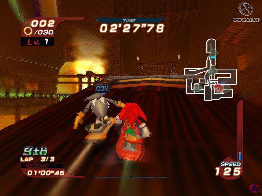 Особенности игры: 1. Непривычные законы. Нерушимые законы физики отменяются! Одним нажатием кнопки вы можете превратить в скоростную трассу самые невероятные места, вроде стены или водопада. 2. Сокращайте маршрут! Не забывайте искать новые пути к победе, ведь зачастую незаметная дорожка ведет прямиком к финишной черте. 3. Берегите голову! Используйте специальное устройство, чтобы защитить себя от летящих камней или падающих машин. Помните, гонки — это всегда риск. 4. Фантастические средства передвижения. К вашим услугам несколько невероятных «болидов»: летающая доска, мотоцикл, автомобиль на воздушной подушке. 4. Знакомые герои. За штурвалами сверхскоростных машин устроились не простые гонщики, а всем известные герои из игр компании SEGA во главе с самим Соником. Выбирайте персонажа по душе и отправляйтесь в захватывающий мир головокружительных скоростей и невероятных возможностей.