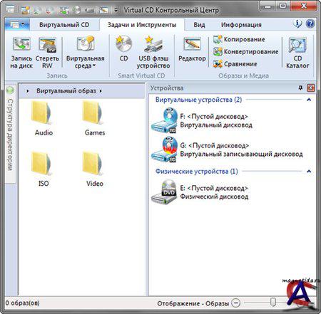 Описание: Virtual CD — программа для создания виртуальных компакт-дисков. Допускает создание до 25 виртуальных CD/DVD-приводов и ограниченное только размером свободного места на жестком диске количество образов CD/DVD, которые при необходимости смогут работать одновременно с разными приложениями. Еще одно применение нескольких виртуальных CD-драйвов — установка в них наиболее часто используемых образов компакт-дисков на постоянной основе (в этом случае не нужно будет сначала "вставлять" их в виртуальный CD-драйв, а уж только потом пользоваться). Программа умеет работать с Data / Audio / mixedmode CD, DVD-ROM, non-CSS DVD-Video, Photo-CD и CD-Text. Основные функции Virtual CD: Возможность использования до 23 виртуальных приводов одновременно Создание неограниченного количества виртуальных дисков Редактор для создания виртуальных дисков любого содержания Автоматическое опознание названия, альбома и исполнителя аудио дисков Поддержка DVD-ROM, DVD-Video, Photo-CD и CD-Text форматов Легкое использование в режиме упрощенного копирования для начинающих Организация виртуальных дисков по папкам Импорт ISO файлов Улучшеное сжатие данных Доступ к виртуальным дискам внутри сети Поддержка до 99 аудио треков на один виртуальны CD диск Редактирование существующих виртуальных дисков с помощью встроенного редактора Редактор приводов для изменения количества виртуальных приводов в системе Защита виртуальных дисков паролем от несанкционированного доступа В этой версии имеются следующие нововведения и улучшения: Введена полная поддержка операционной системы Windows 7; Добавлена поддержка Blu-Ray и HD DVD; Значительно переработан интерфейс программы для более удобного доступа к функциям. Добавлены функции записи данных на CD, DVD и Blu-Ray; Добавлены функции быстрого конвертирования любых аудио-файлов в популярные MP3 или OGG Vorbis. Предусмотрена возможность устанавливать качество исходящего файла; Новый режим «Data Safe» для автоматического создания зашифрованных дисков; Прочие улучшения: расширенная поддержка ISO-образов, интеграция внешних программы в интерфейс приложения, расширенный API для разработчиков и прочие, менее значительные улучшения.