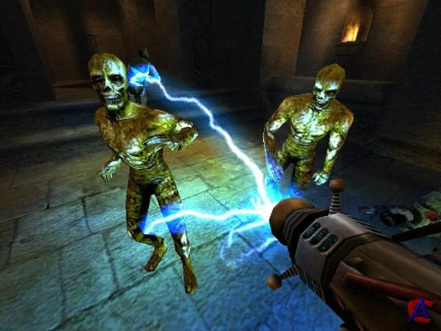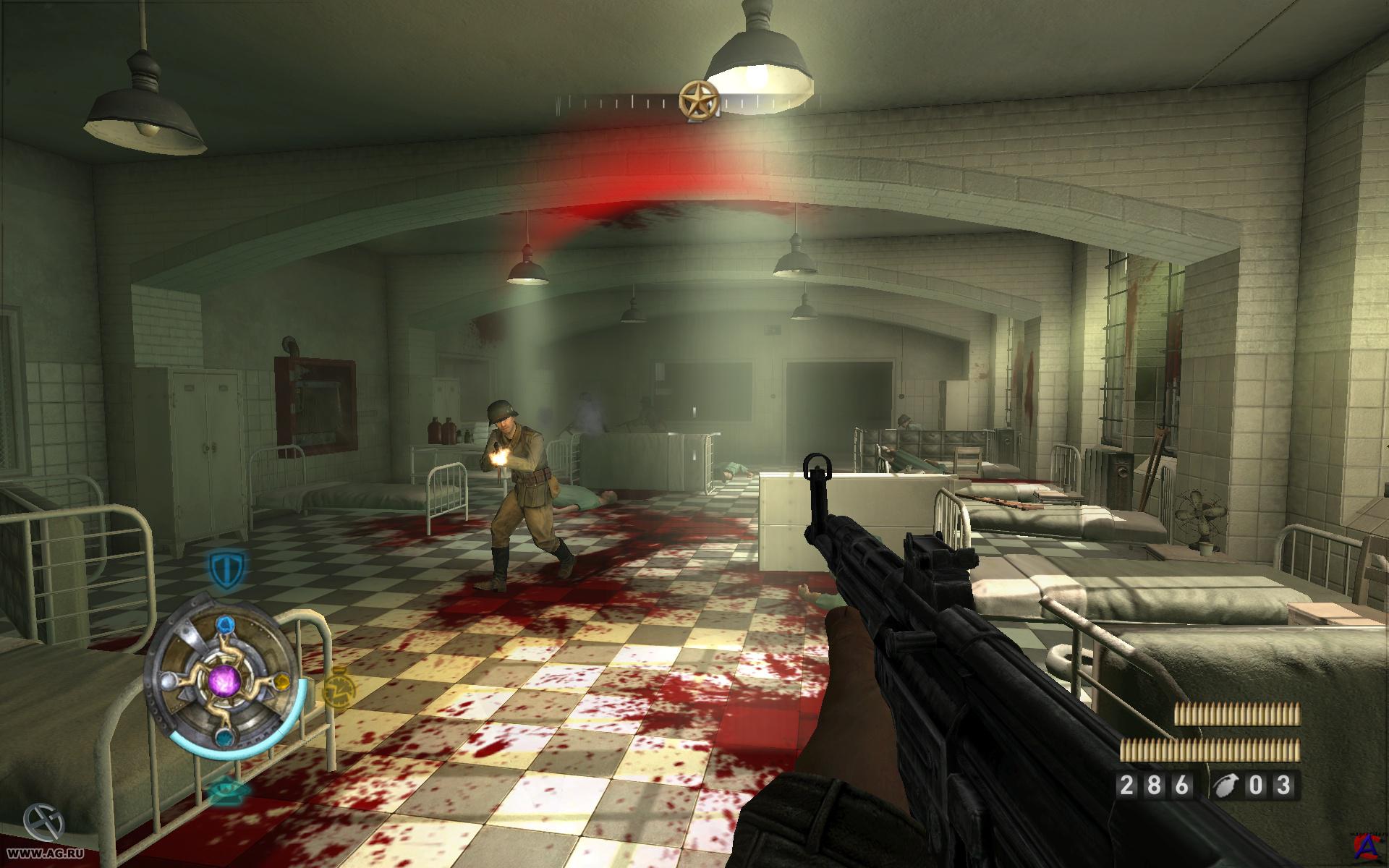 Return to Castle Wolfenstein - Врата времени Описание: Секретные испытания на эсминце Элдридж в 1944 году - небыль ставшая страшной реальностью. Подобные испытания по перемещению армии во временном пространстве проводились и немецким командованием в старых катакомбах замка Wolfenstein.Идет 1945 год,ученым фашистской Германии удалось установить Врата Времени,начались секретные испытания.Ставка Гитлера получает подтверждение о возможности переброски войск во временном пространстве с целью изменения хода войны.Вы совершенно случайно становитесь свидетелем этих событий ,испытав действие установки на собственной шкуре.Что ж,господин ученый,добро пожаловать в замок!У вас теперь только один вариант остаться в живых-прокладывать путь оружием к вратам ,в неравном бою простреливая головы матерых солдат СД СС. Системные требования: 1. CPU 800 MHz, 2. 512 Mb RAM, 3. 64 Mb Video 3D
