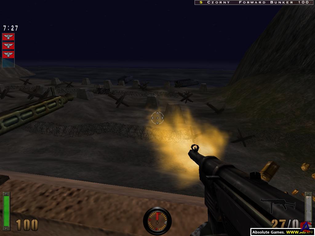 Return to Castle Wolfenstein - Диверсант Описание: Наступил страшный день для Англичан ,немецкие ученые изобрели «сверхоружие» и теперь планируют стереть с лица земли Туманный Альбион. Все приготовления законченны,приказ отданн… Вы-английский диверсант и ваша основная задача-помешать ужасным планам немецкого командования и не допустить запуска новой эксперементальной ракеты.Для достижения вашей цели вам придется высадиться на берег Нормандии,проникнуть в тыл противника ,найти вражеский бункер и обезвредить ракету Системные требования: 1. CPU 800 MHz, 2. 512 Mb RAM, 3. 64 Mb Video 3D