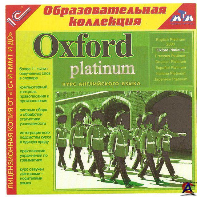Системные требования: Pentium 100, Windows 95/98/NT/2000, CD-ROM, SVGA, звуковая карта О программе. Oxford Platinum основан на современной методике интенсивного изучения иностранных языков, разработанной преподавателями всемирно известного Оксфордского университета. Весь звуковой материал озвучен профессиональными дикторами носителями английского языка. Вы сможете корректировать свое произношение с помощью компьютера, быстро и правильно конструировать простые фразы и сложные предложения на английском языке, писать диктанты, изучите грамматику и фонетику английского языка, сможете контролировать успешность процесса обучения. Курс состоит из пяти взаимосвязанных подсистем: Диалог. Раздел состоит из 144 уроков с диалоговыми ситуациями из жизни. Каждый урок содержит словарь, грамматические пояснения к каждому диалогу, упражнения по отработке произношения, написания и обратного перевода слов и фраз. Фильм. Звуковой ряд, слайды и текст помогают понять, как говорят в стране, язык которой вы изучаете, уловить различие диалектов и просто почувствовать язык. Cловарь. Иллюстрированный и озвученный словарь курса содержит более 15000 слов (объем достаточный для свободного общения на языке). Грамматика. Доступный по содержанию и удобный в использовании грамматический раздел содержит полный курс морфологии и синтаксиса. С его помощью Вы научитесь говорить и писать на изучаемом языке не только грамотно, но и красиво. Фонетика. Этот раздел курса содержит исчерпывающий теоретический материал по фонетике и практические занятия по отработке произношения, интонации и скорости речи. Способ установки: Монтируете образ в эмулятор CD/DVD дисков (например Daemon Tools), запускаете Setup.exe.